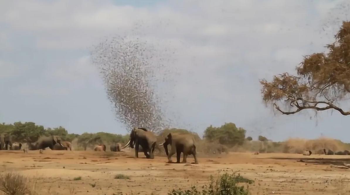 很明显,大象虽强,但是和20万只小鸟相比,它们也只能走为上了。