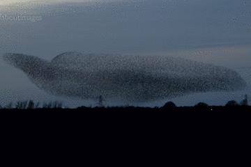 它们像水墨画一样在空中飞行,发现草地后就一起冲向草地,后面的鸟群吃完一片之后就飞向前飞行再落下,整个过程就像是草地变成了波涛汹涌的海面,小鸟就像是海浪一样一波接一波飞向前方。