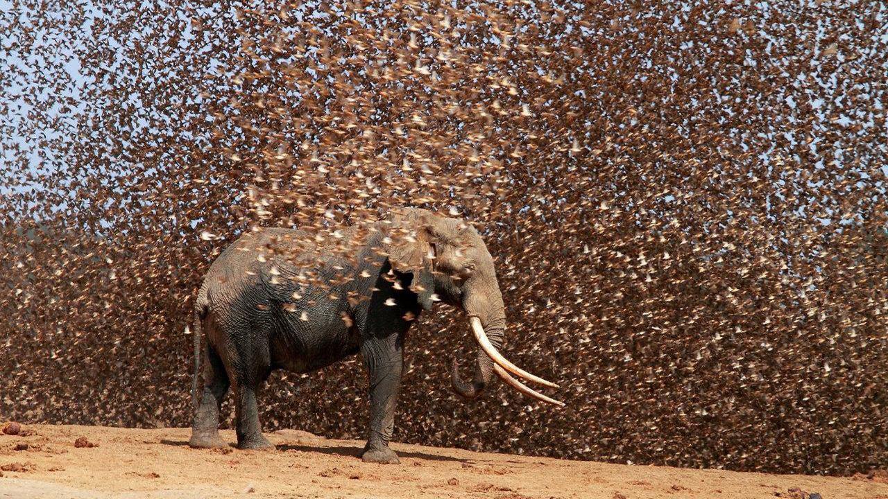 这位摄影师之后在展示自己的作品的时候,声称当时鸟群的密度非常大,至少有20万只小鸟在攻击大象。